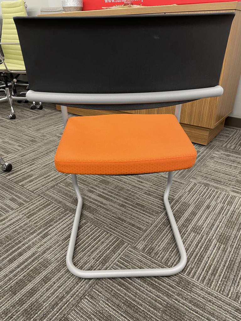 Description Black Back Orange Cushion Seat Silver Arms and Base 18" Depth; 19" Width