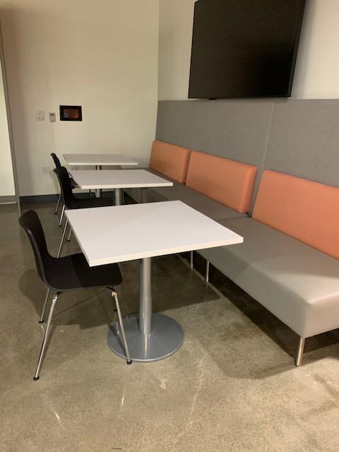 Description Grey Tall Back 56.5" 51.5" L By Haworth. Square Tables are avail. (sold together or separately).