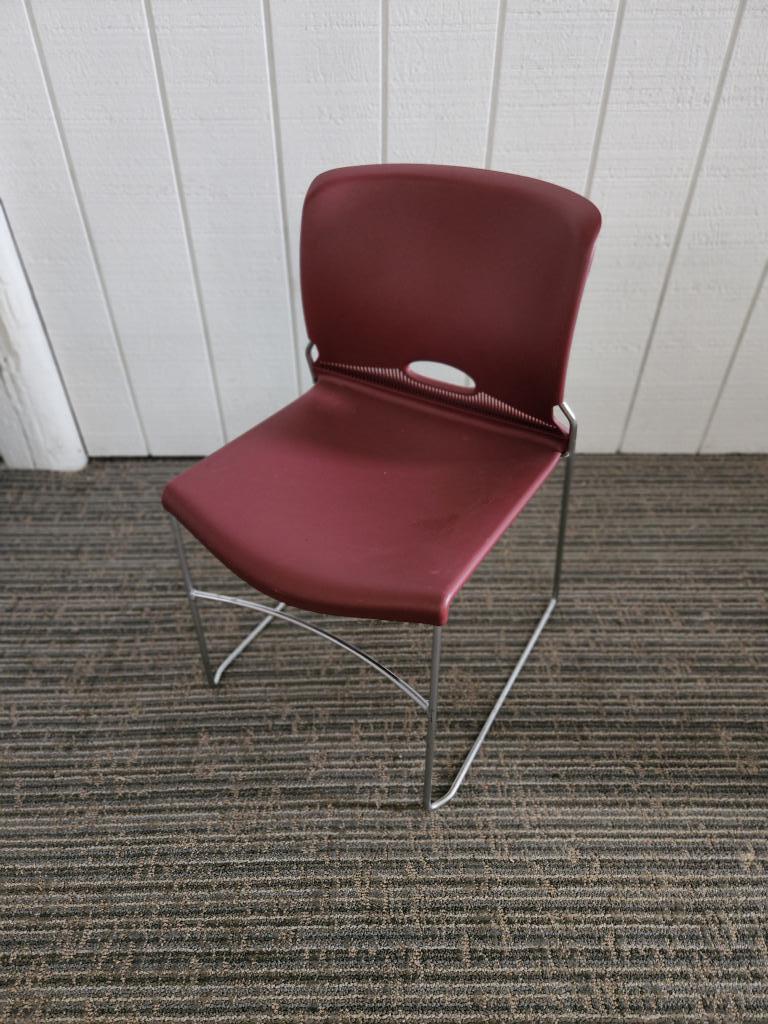 Description Hon plastic cafe stack chairs - burgundy armless chrome sled frame