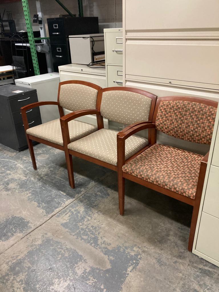 Description Wood Frame Guest Chairs. Most not Matching. **Local Delivery Only. We do not ship out of state.**
