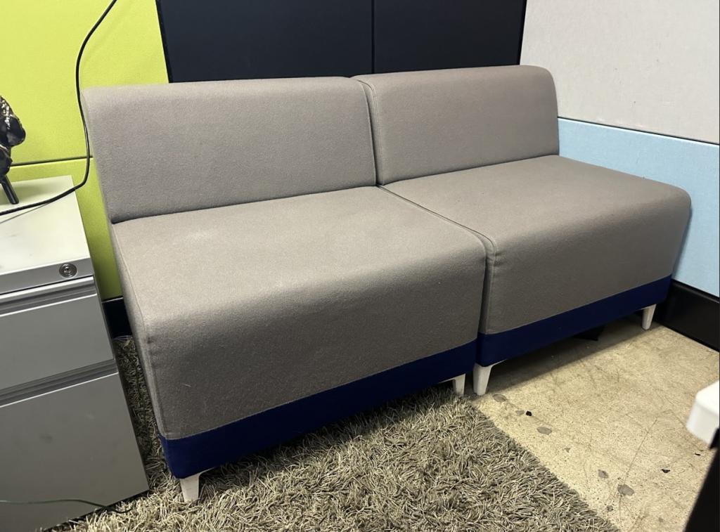 Description We have a two piece Steelcase grey modular sofa. This is a perfect executive sofa piece or accent piece. These sofas can be divided into two sofa lounge chairs if need be or put together to be a couch.