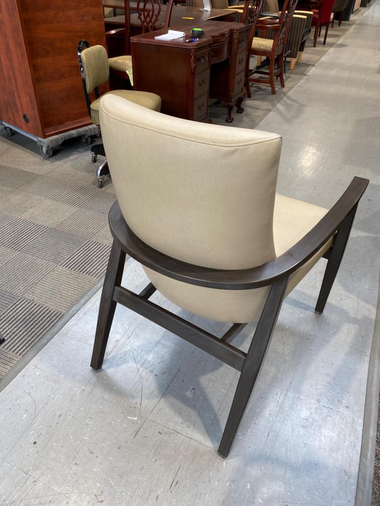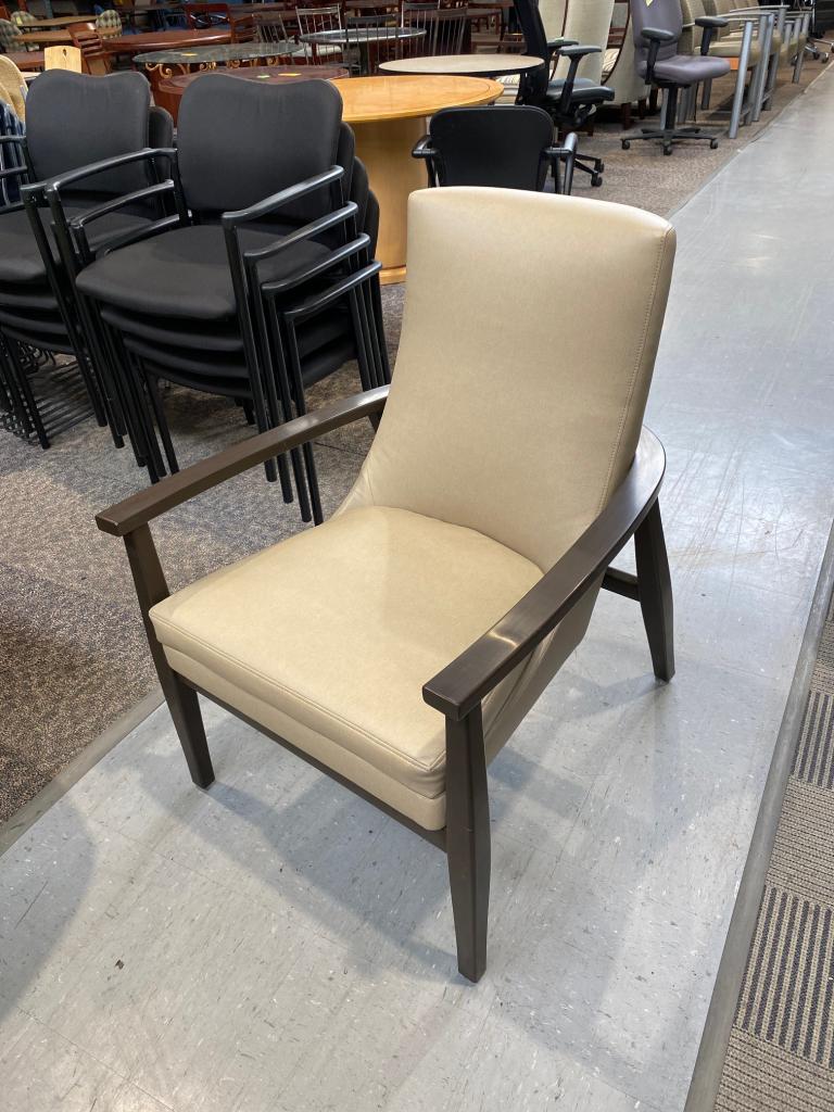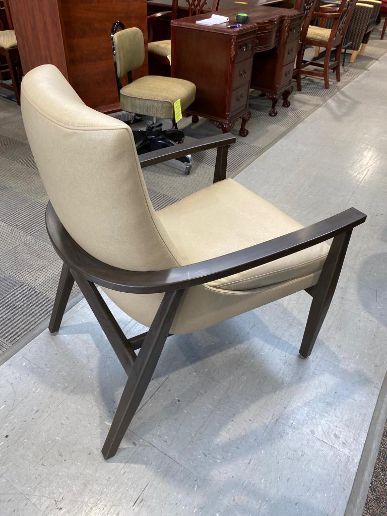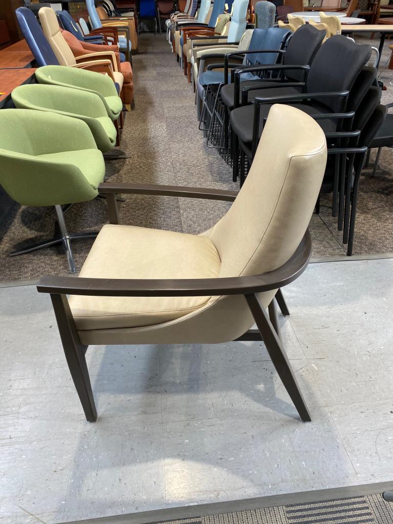 Description Club Chair by Kwalu In Beige Color Leather used chair, w/ normal wear & tear, in good working condition 22.5" Between the Arms 20" Seat Depth 19" Seat Height From Floor 38" Height Of Entire Chair