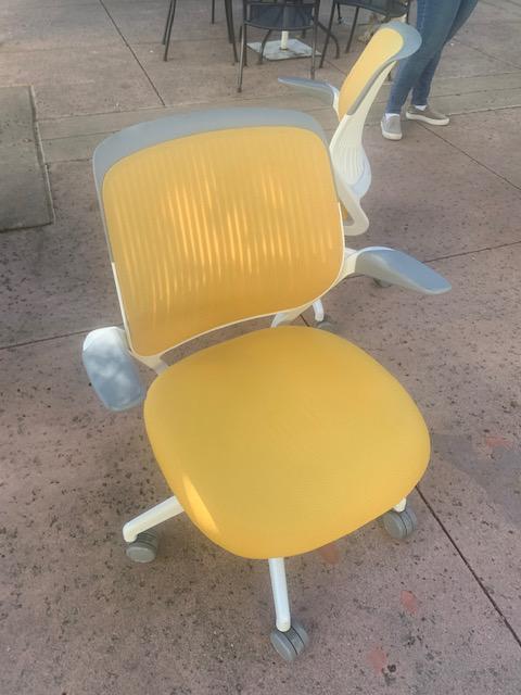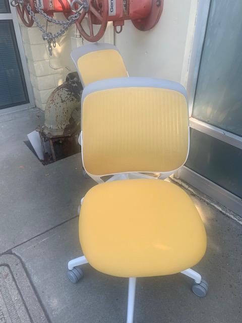 Description Mesh Back-Breatheable (citron & white trims). White Frames. Citron yellow seating. Pneumatic lift. Chairs swivels. Moves with your movement. Light wt. and easy to colloborate. Arms = 16 qty No arms = 02 qty.