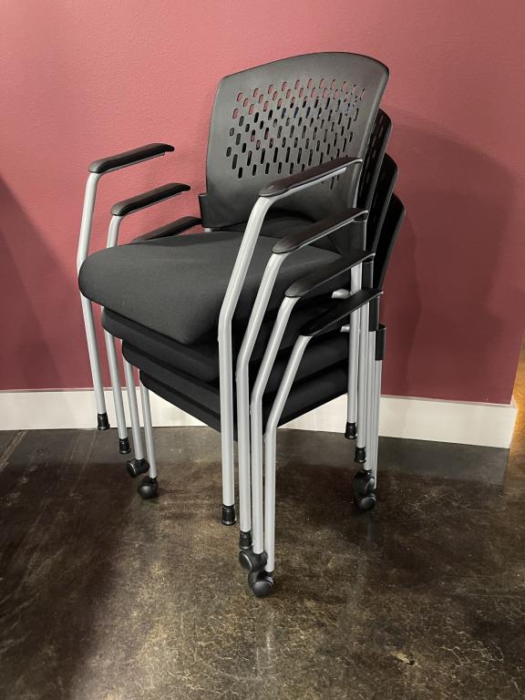 Description New black guest chair -plastic back -Fabric