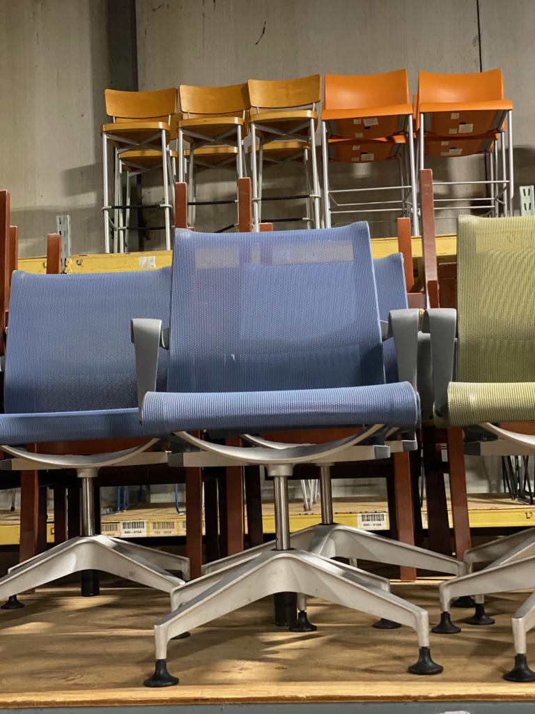 Description Used Herman Miller Blue Meshback Chairs are now available in Atlanta, GA. These chairs have a blue breathable mesh with gray fixed arms, and base. *WHS*