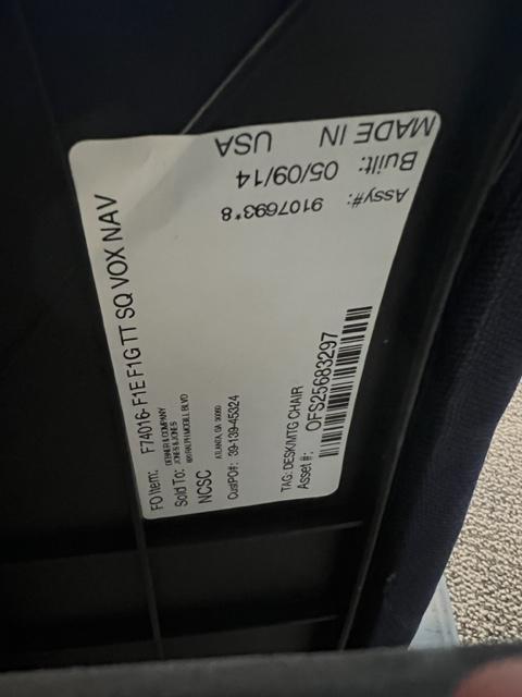 Description Available 02/23, OFS First office task chairs. These mesh back chairs have a purple fabric seat to add a splash of color to any office space. *HS_02/23*