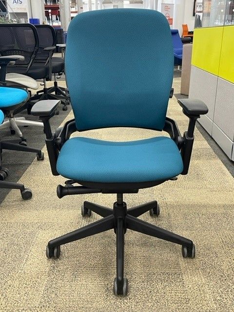Description The pre-owned Steelcase Leap V2 task chair has Bee I Caspian (4975-001) upholstered body and a Black (6205) frame with a five-star caster base. Ergonomic Features: - Lumbar Support Adjustment - Lumbar Firmness Adjustment - Upper Back Tension Adjustment - Variable Back Stop - Seat Height Adjustment - Adjustable Arms - 'Liveback' Seat Back - Flexible Seat Edge - Seat Depth Adjustment Dimensions: 39"D x 27"W x 44"H. -PREMIUM GRADE-