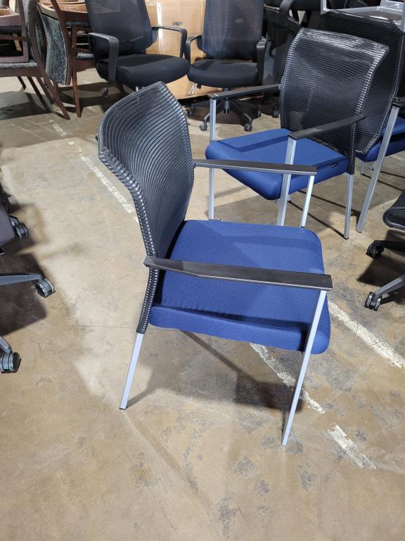 Description Black mesh back blue fabric seat