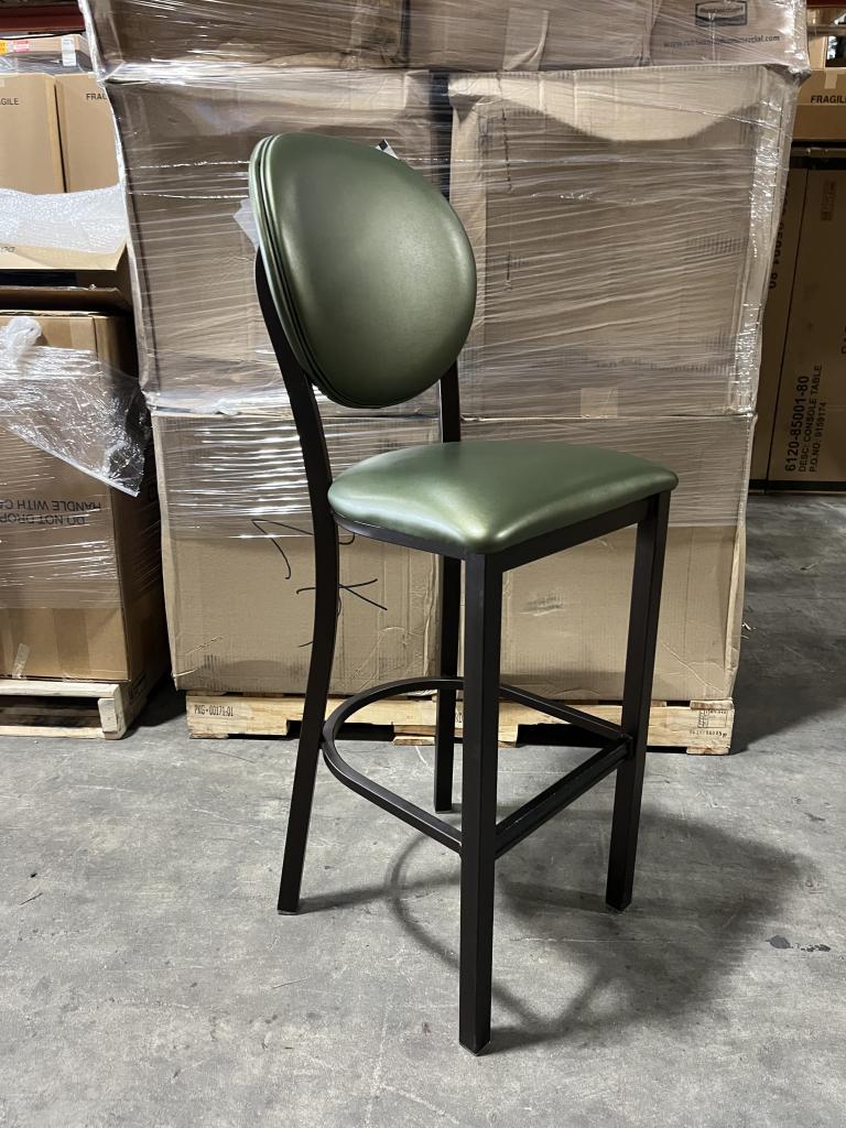 Description Now Available, MTS Bar Stools with Green Leather. These Bar Stools would be great for break rooms or dining areas. Due to its vinyls material they are easy to clean. *WHS*