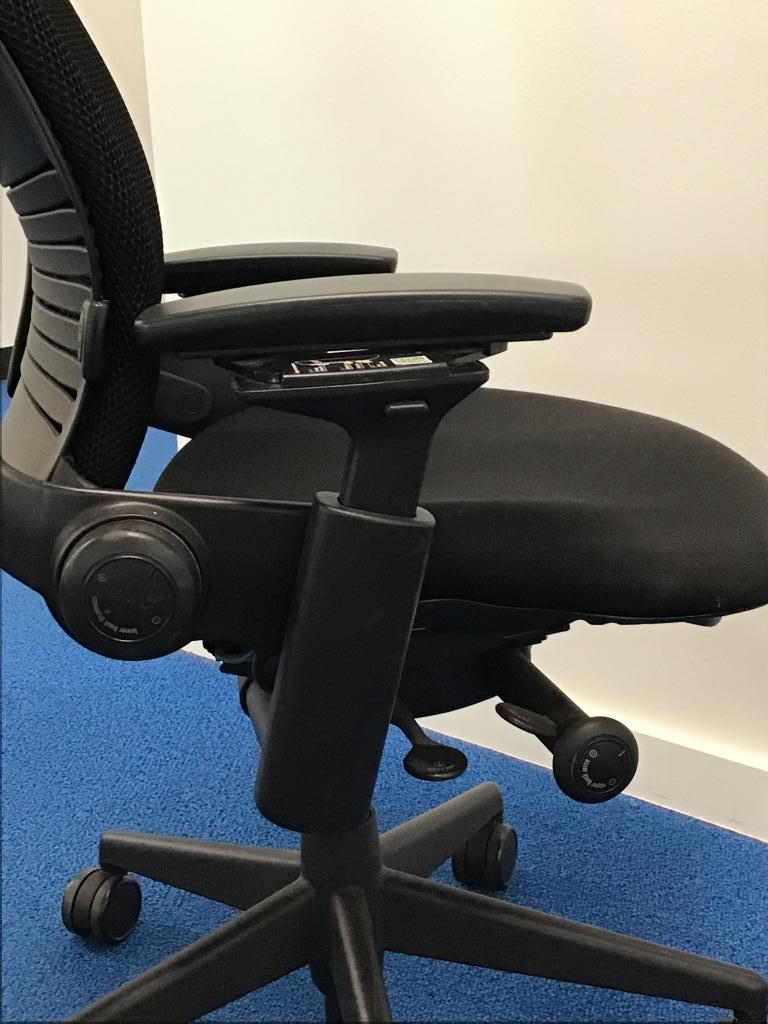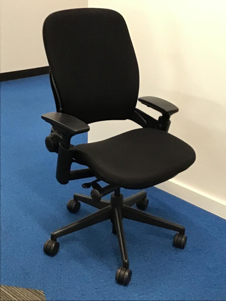 Description We have these Steelcase Leap V2's black fully loaded with lumbar support, tilt, adjustable arms and seat slider.