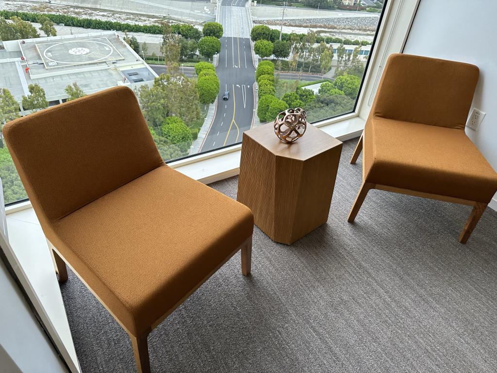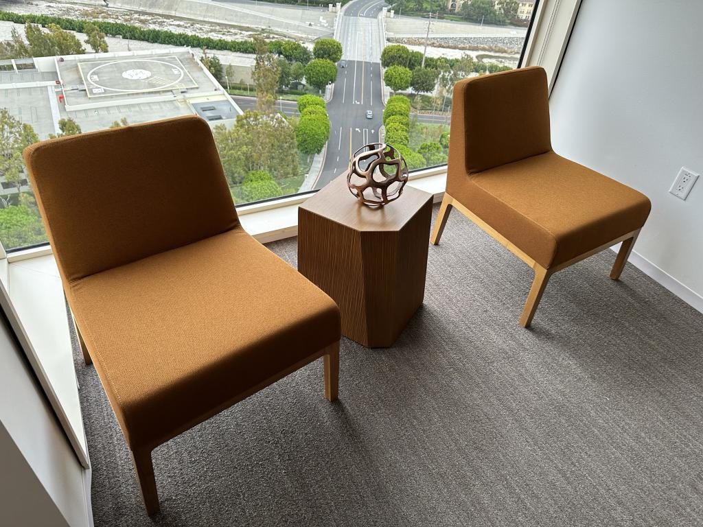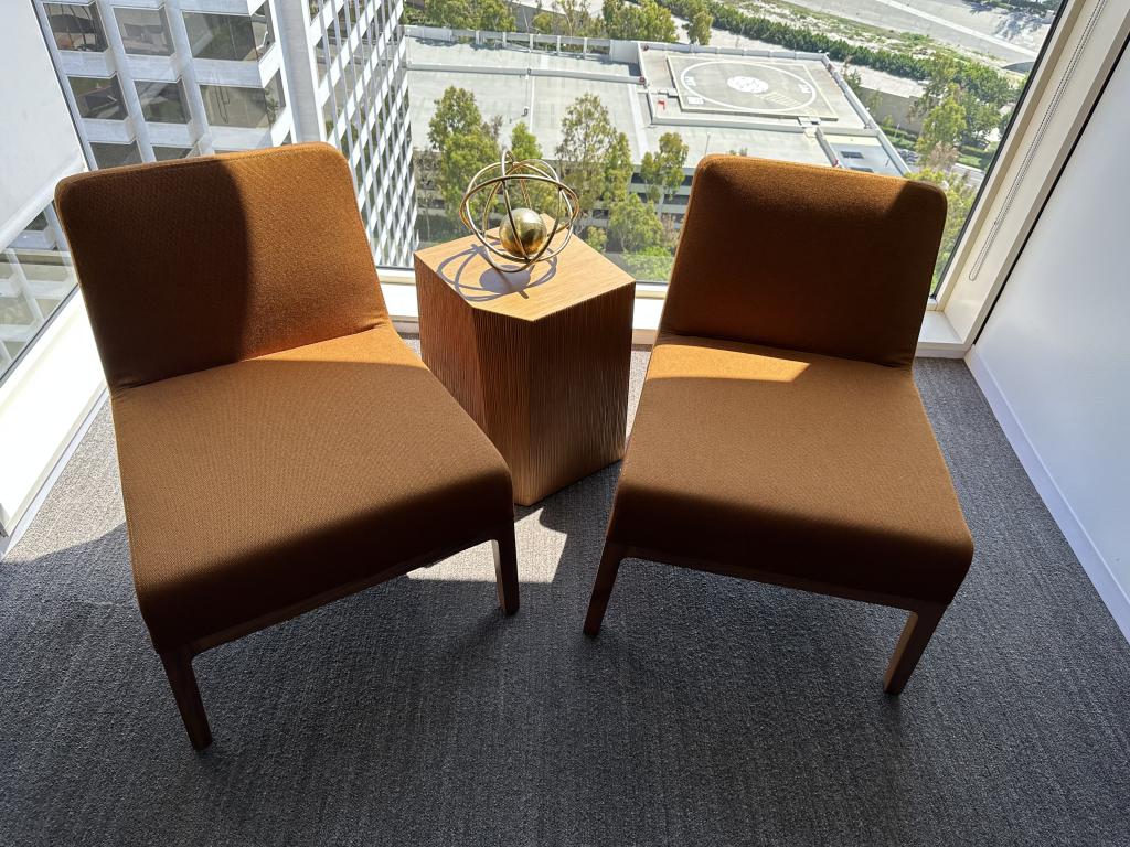 Description We have these Keilhauer Saddle Brown with wood legs lounge chairs that are in excellent condition. Give your office space or home a perfect designer accent piece at a fraction of the price of buying it new, in excellent condition.