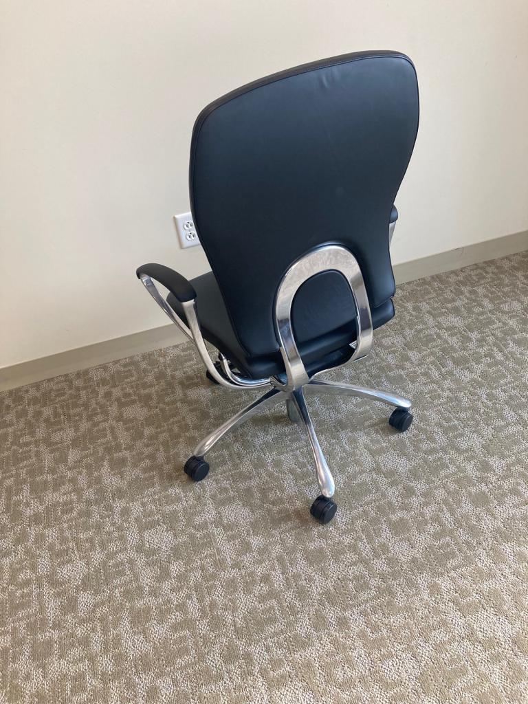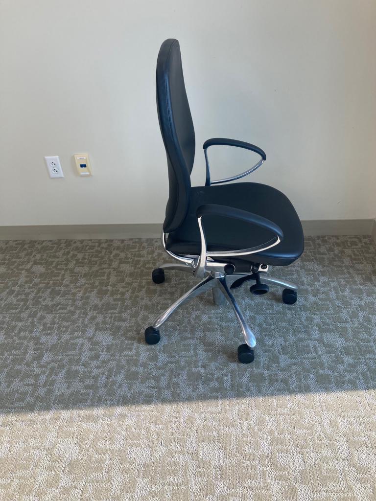 Description Set of 60 matching black leather conference chairs. Originally made by Geiger , but now Herman Miller