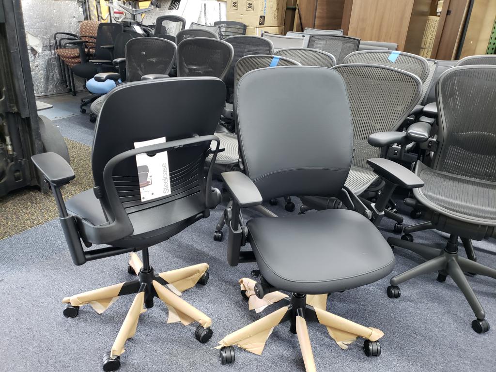 Description Steelcase Leap Version 2, Black Fabric, Light Gray / Silver Frame, Used in Great Condition, 11 left, $495.00 each Also, Black Eco Leather with Black Frame 12 left, $650.00 each Out of Box Condition