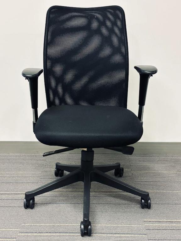 Description Pre-Owned Compel Argos Task Chair. Black Mesh back with a black upholstered seat and a black 5 star base. Features: Pneumatic Height Adjustment / Tilt Lock / Adjustable Tilt Tension. Seat Height: 37 1/2" x 41"