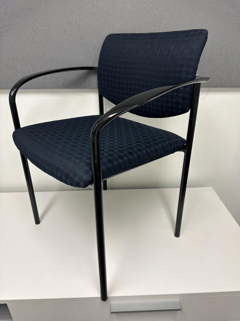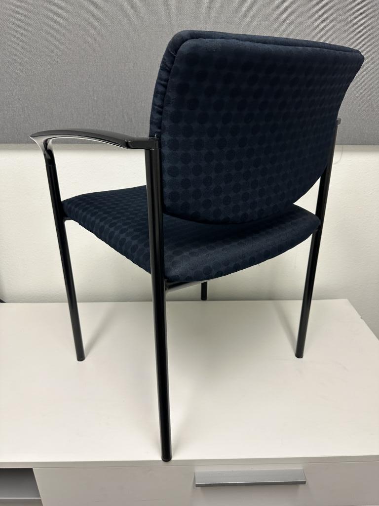 Description We have these Steelcase Player navy blue stack chairs with a modern fabric with black metal frame in excellent condition. These were the guest chairs for Morgan Stanley bank.