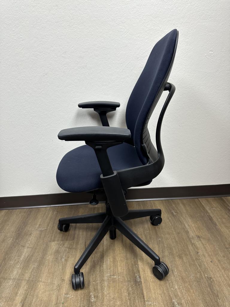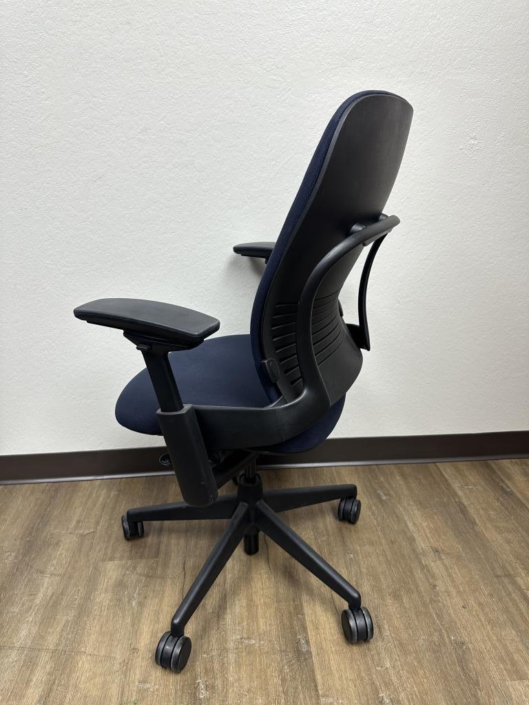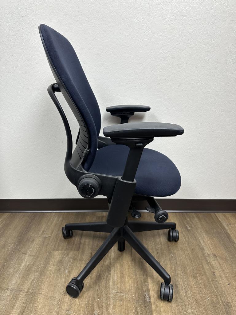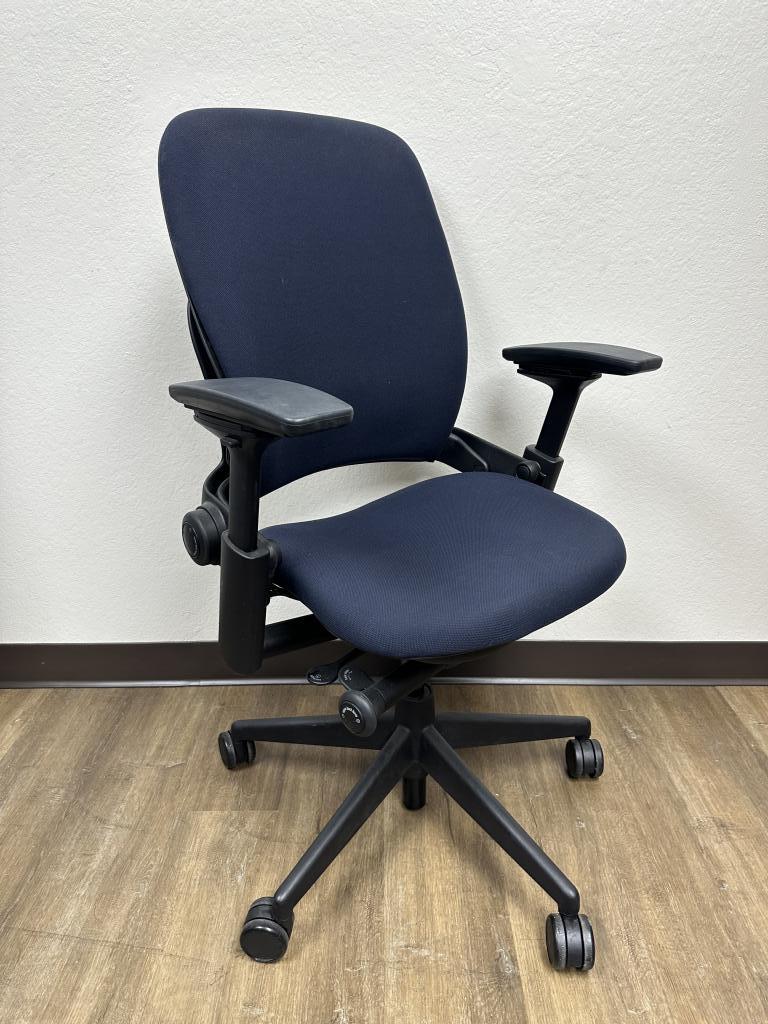 Description We have these Steelcase Leap V2 fully loaded navy blue in excellent condition that we liquidated from a Morgan Stanley Bank. These chairs have a tile lock, seat slider, 4d arms, adjustable arms, pneumatic cylinder and lumbar support.