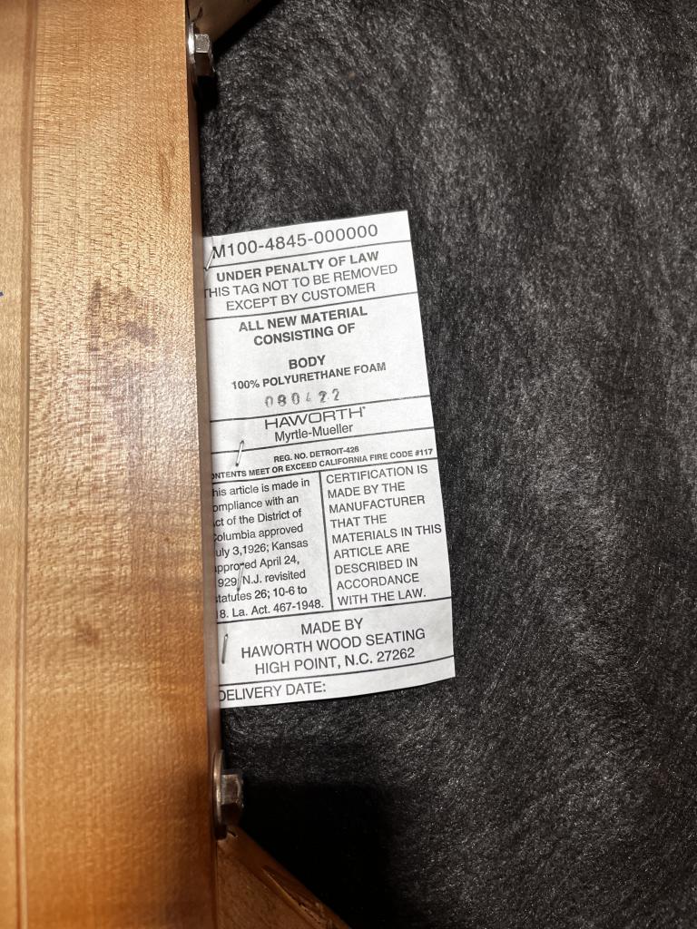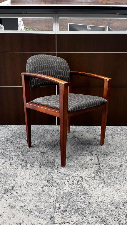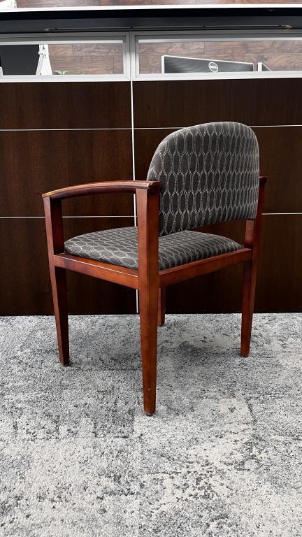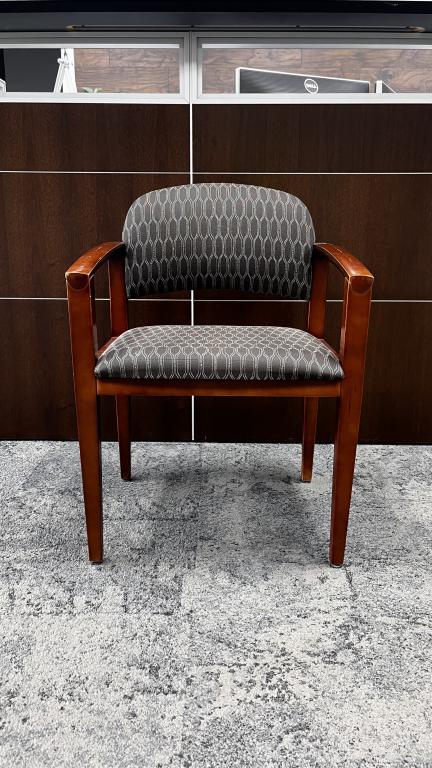 Description Create a warm and welcoming setting with these Haworth Side Chairs. These chairs were designed with a gray and white upholstery which complements the cherry wood finish. *WHS* (*P) 40 chairs on Rental until 6/27/24