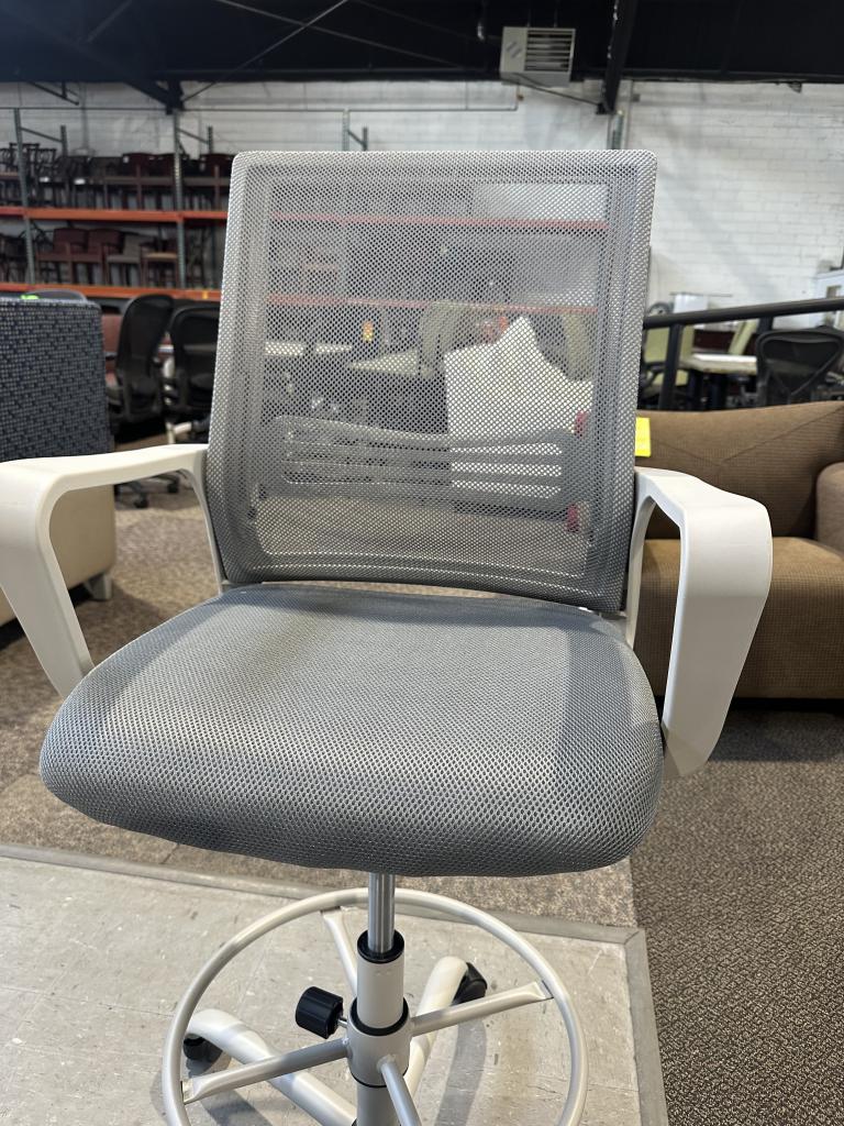 Description Drafting Chair/ Stool in Gray Brand New, Most Still in Box Unassembled Goes up and down Foot Ring Adjustable $89 For Assembled