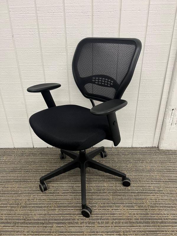 Description Upholstered back and seat- Black Lumbar Support Pneumatic Seat Height Adjustment 2-to-1 synchro Tilt Control with Adjustable Tilt Tension Height Adjustable Angled Arms