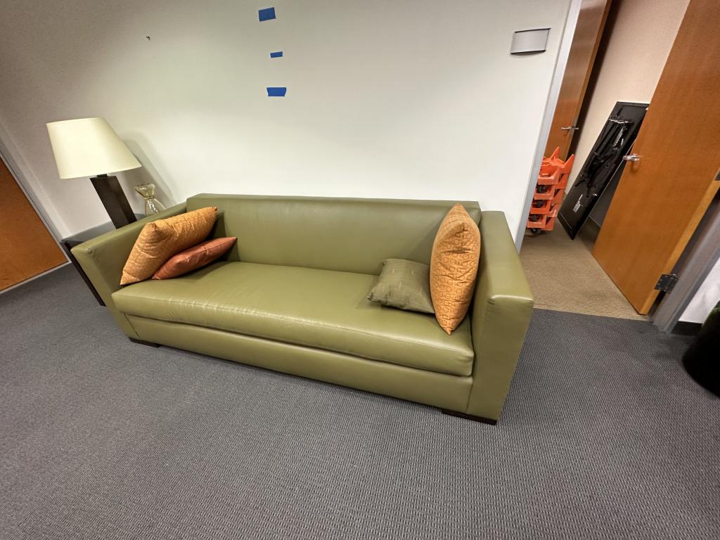 Description We have this Brayton International 96”x36” Olive green leather couch in great condition. This is great for any office or home and comfortable to sit or lay on.