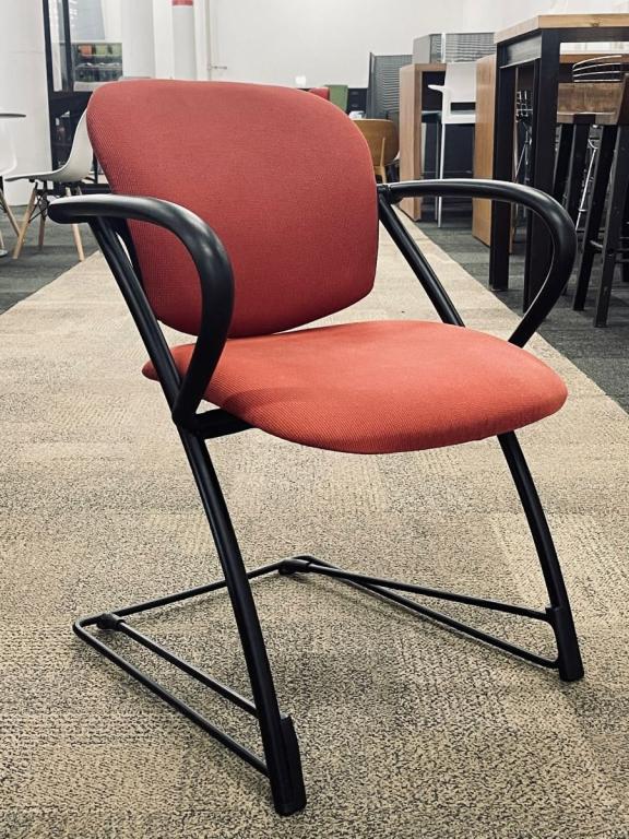 Description Pre-owned Steelcase Ally Multi Purposed Side Chair with red fabric and black frame. Features: Stackable Sled Base, Flex Back, Arms. Available in many colors, fabrics, and prints. Contact us for more information. Ideal for offices, meeting rooms, dining, cafes, waiting rooms, schools and more!