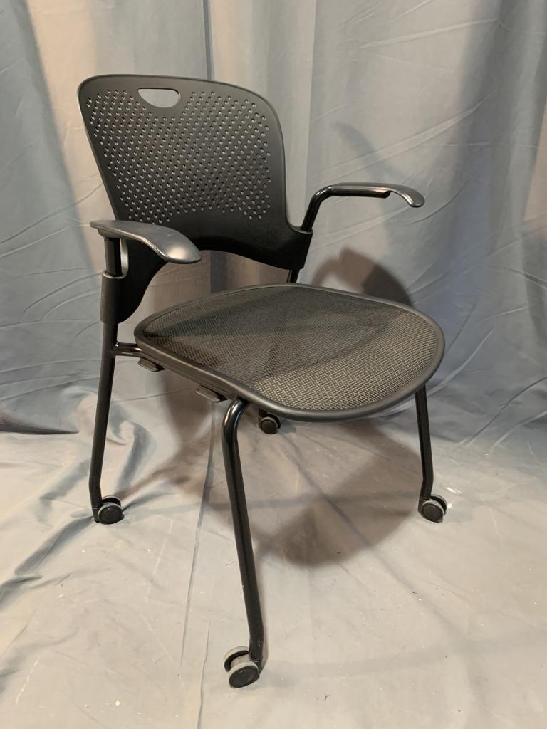 Description We have these Herman Miller Caper stacking chairs in excellent condition. Perfect fusion of timeless design, durability, and practicality, w/FLEXNET seat uses advanced suspension materials to minimize pressure points, which keeps the person comfortable as he or she sits.