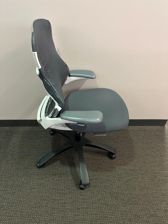 Description Beautiful pre-owned Grey and White Back Generation Task Chairs with grey fabric seat now available in high quantities!