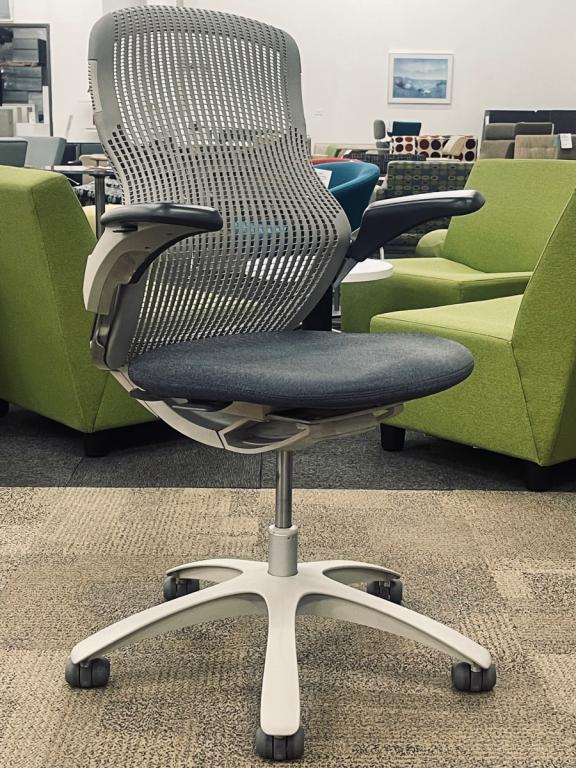 Description Pre-owned Knoll Generation Task Chair, In a world of prescriptive chairs with lots of adjustments, Generation has you covered with intuitive movement that takes the work out of sitting—so you can sit and get to work. With a Pebble Plastic back, Pebble Fabric seat and a Light Frame Color. Features: Pneumatic height adjustable Seat / Height Adjustable Arms / Tilt Lock / Seat Depth / Frameless Flex back / Flex Seat. Dimensions: 26" D x 28 1/2" W x 39 1/4" - 44 1/2" H