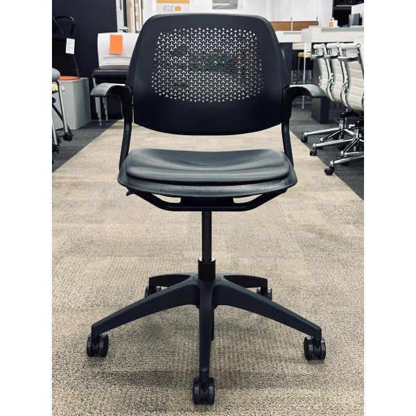 Description Pre-owned Allsteel Inspire Multi Purpose Chair. Inspire seating allows your body to move, shift, and breathe more naturally and ergonomically. Inspire responds to the specific needs of today's dynamic offices, learning environments, and healthcare facilities with a contemporary, durable design. Finishes: Black Plastic Perforated back with a Black vinyl seat. Dimensions: 24 1/2" W x 25" D x 34-39" Overall Height