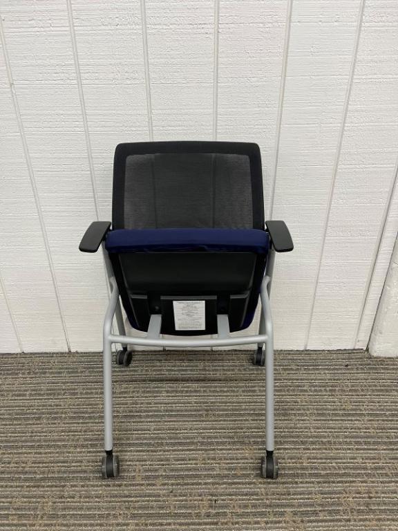 Description Beniia Artii Nesting Chair - blue seat Dimensions -Back height 35.5” -Arm height 27.5” -Seat height 19” -Seat depth 18.5” -Seat width 18.5”