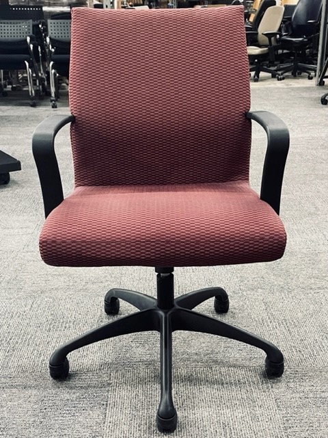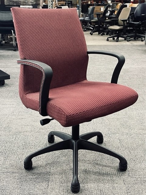 Description Pre-owned Steelcase Chord Mid Back Conference Chair with Red pattern back and seat and a Black frame. Features: Pneumatic Height Adjustable Seat / Standard Tilt Swivel / Tension Control. Dimensions:23 3/4" D x 26" W x 37 1/2" - 40 1/2" Overall Height
