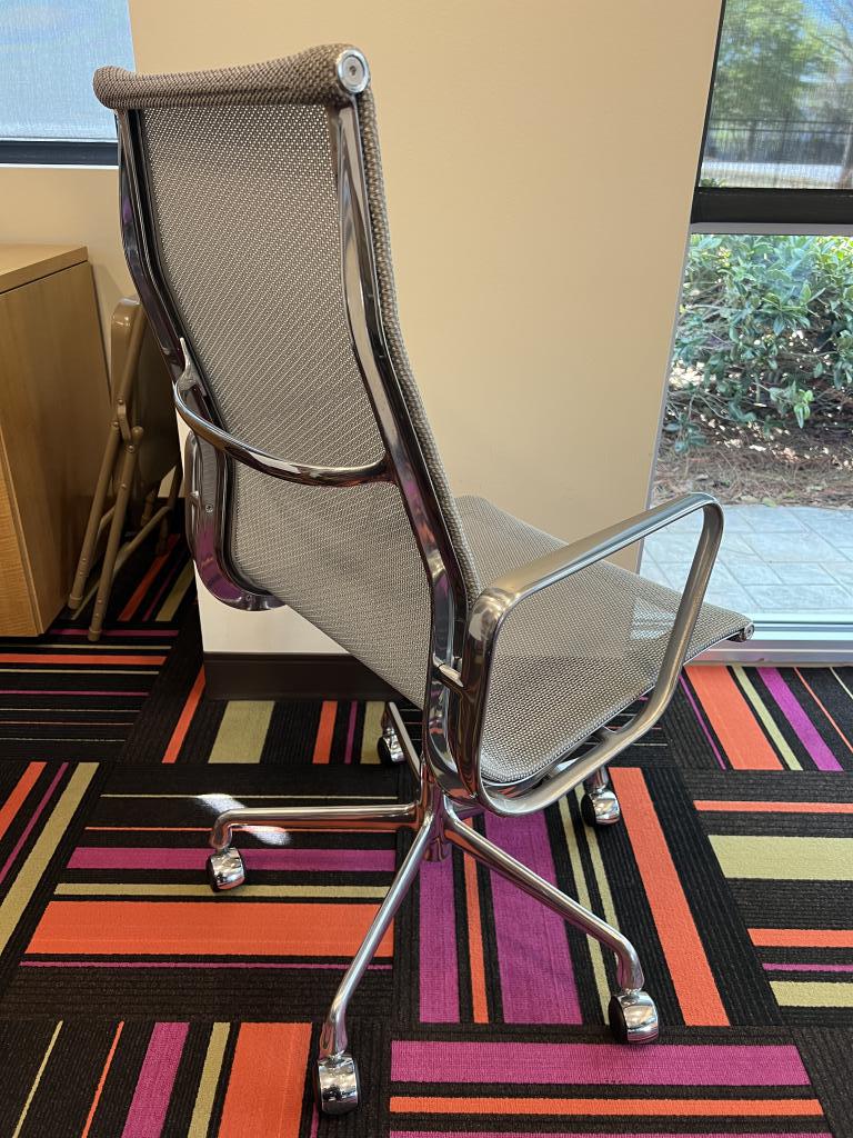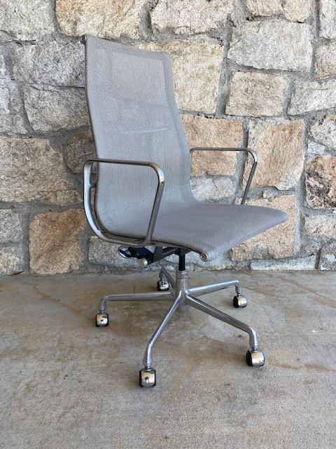 Description The Grey Herman Miller Eames High Back Conference Chair, known for its timeless design and ergonomic excellence, offers exceptional support and comfort with a high-back silhouette and adjustable features. Crafted with a durable aluminum frame and subtle grey mesh, it complements various interior settings. Its swivel base allows easy mobility, making it ideal for professional environments.