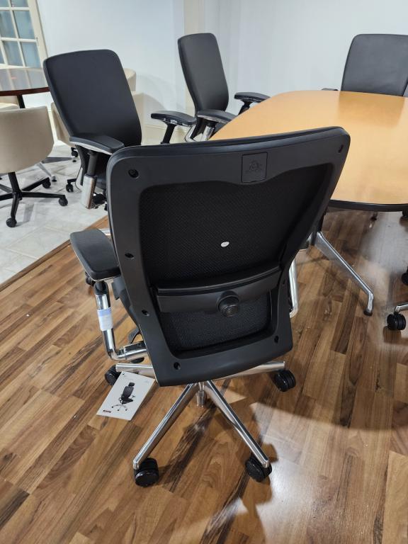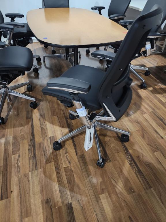 Description Black vinyl with seat slider, tilt lock, lumbar, full adjust arms, swivel and pneumatic lift.