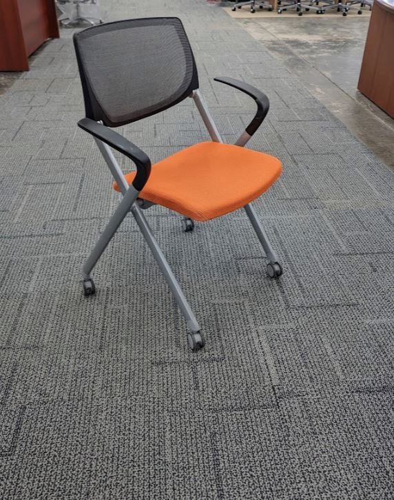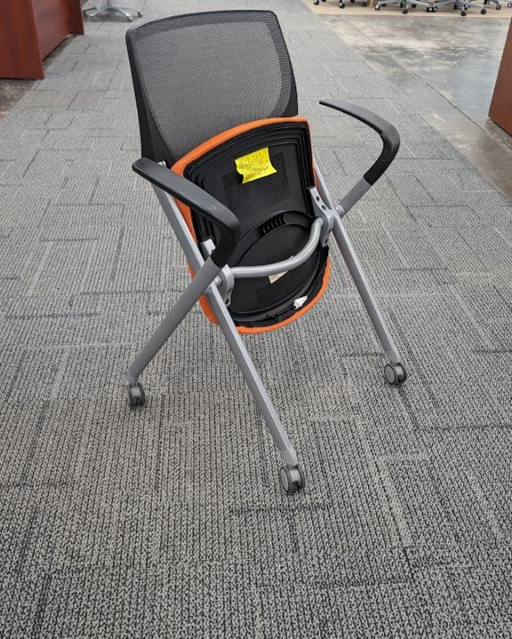 Description Save space with our Allsteel nesting chairs. The chair seat flips up allowing them to easily be stored when needed. Ideal for training rooms & small spaces, looking to save on space!