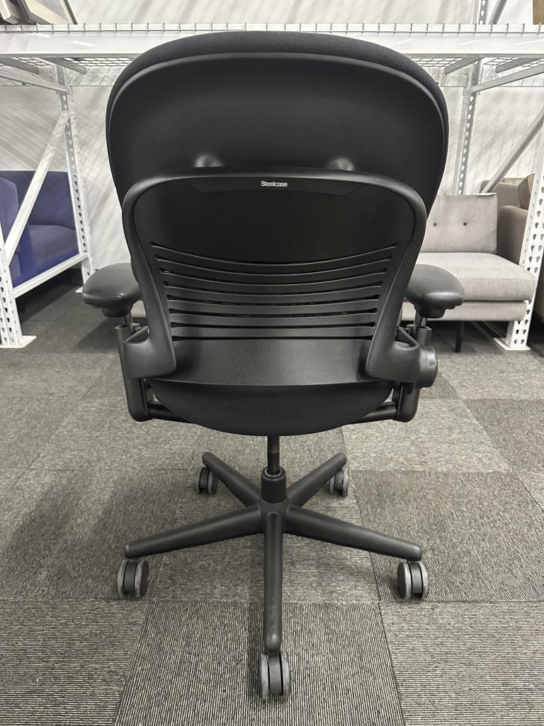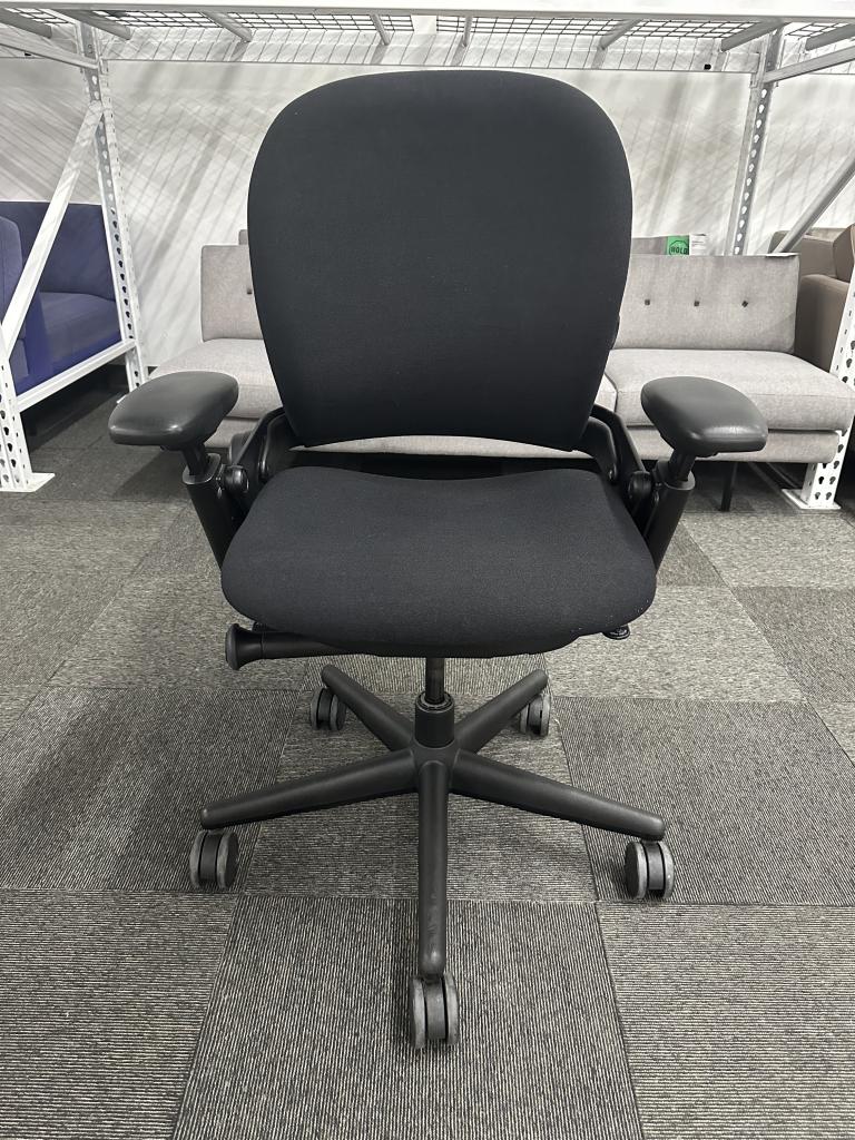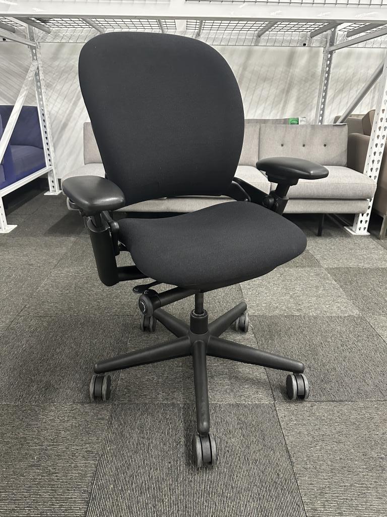 Description Pre-owned Steelcase Leap VI Task Chair High Back with a black upholstered fabric back and seat, black 5 star base and frame. Features: Pneumatic Height Adjustable Seat / Height Adjustable Arms / Seat Depth / Tilt Lock / Syncro-tilt / Tension Control / Lumbar Support.