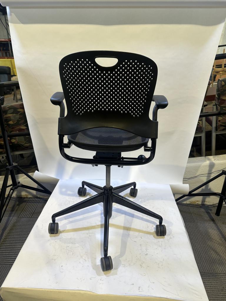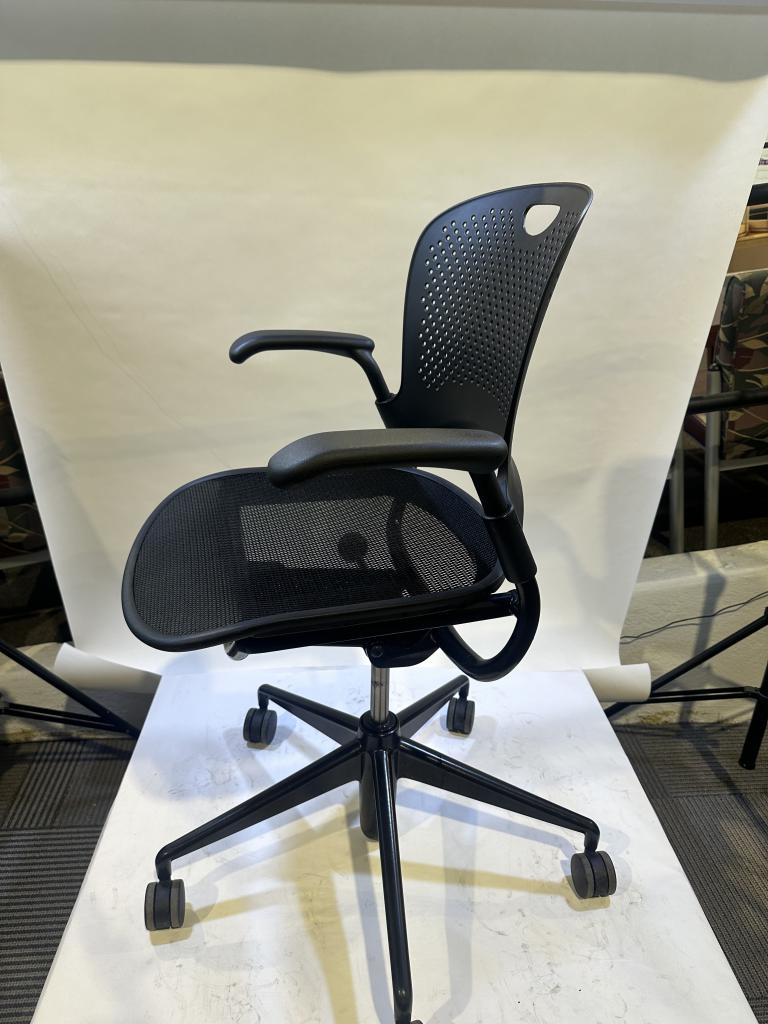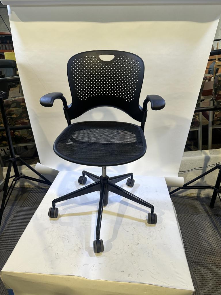 Description Herman Miller Caper Office Chair in Black On Wheels Arms NonAdjustable Chair Goes Up and Down 23 1/2" Between The Arms 70 Like This Available Used Chairs , Comes w normal wear and tear but in overall good working condition