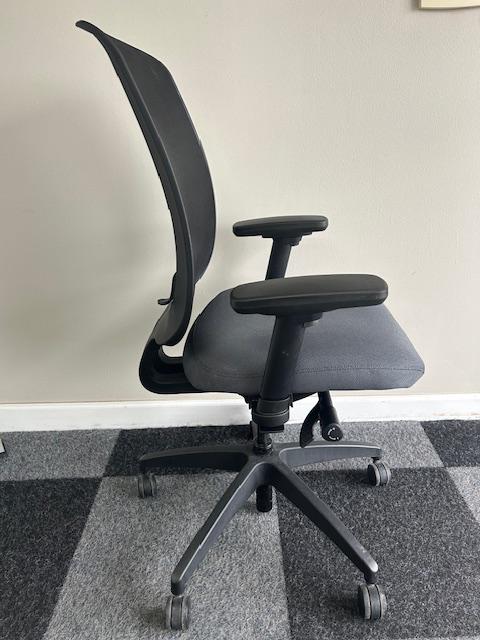Description Allsteel Access Task Chair, with seat/arm height, adjustable arms/seat, tilt tension/lock and 5 caster base. Black mesh back with dark gray fabric seat. Great Condition!