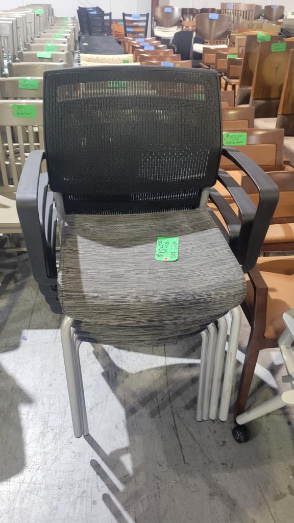 Description SOI Stackable Guest Chair. Mesh-backed chair with brushed nickel legs and gray fabric seat. Commercial-grade, industrial-quality chairs that work well for a waiting room, reception area, break room, or office space.