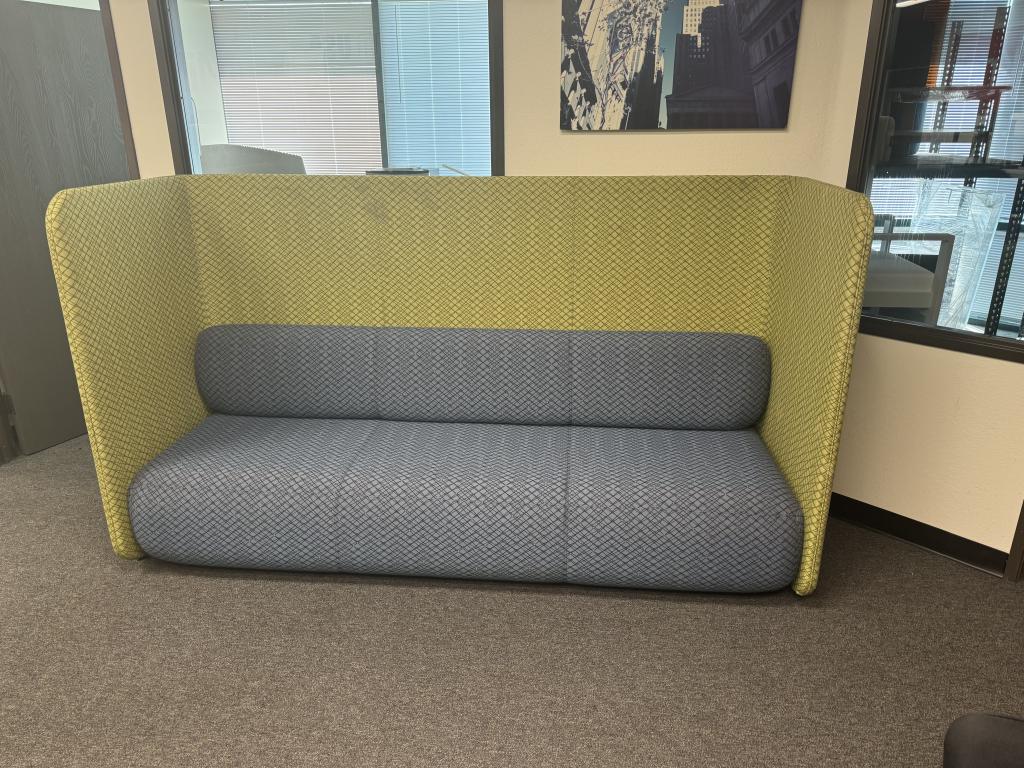 Description We have these Green and Blue Coalesse Sofas that are a commercial grade with an upgraded fabric and 53" tall acoustical privacy walls that surround the couch.