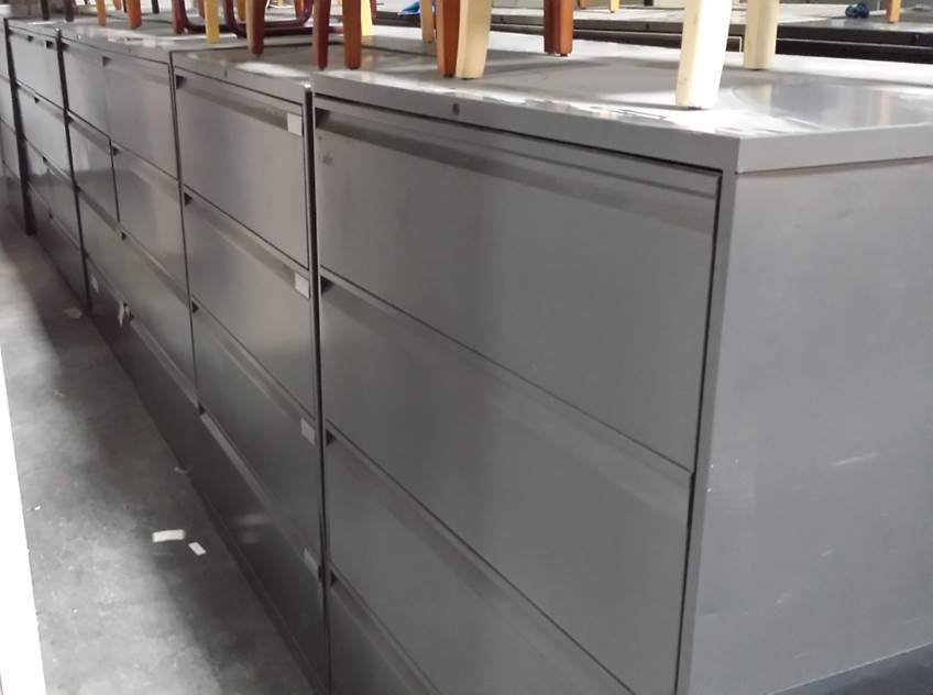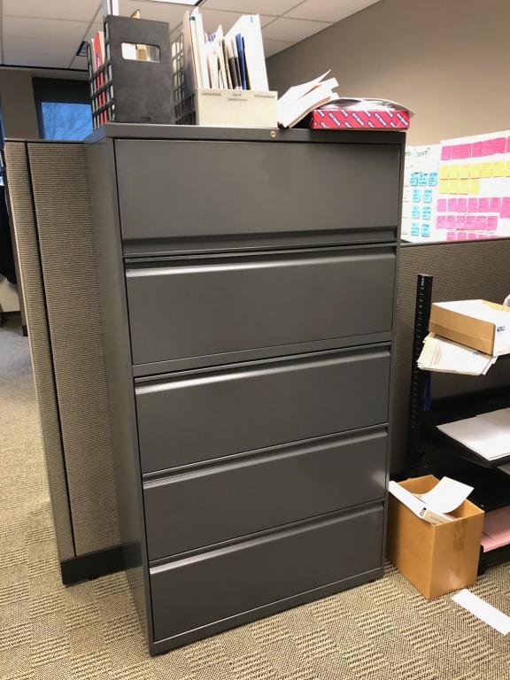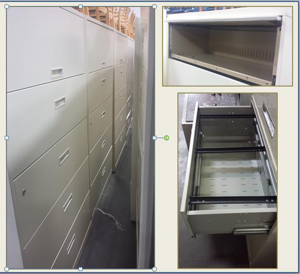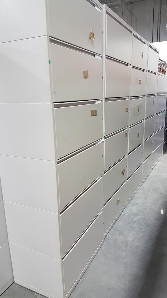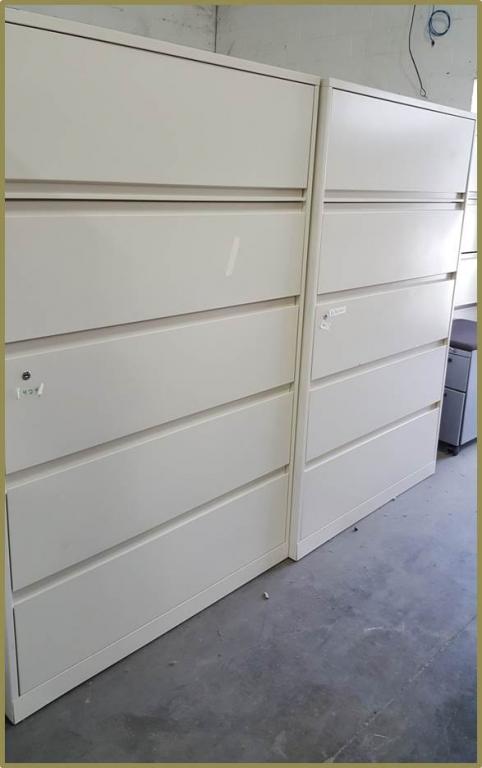 Description We have a large, rotating stock of 2, 3, 4, 5 & sometimes 6 drawer lateral file cabinets! Top name brands like Steelcase, HON, Haworth, Meridian, Knoll, KI, Global, etc..... Choose from finishes such as putty, gray, platinum, black and tan. Keys can be added upon request. Call or email to see what's currently in stock and get your price today!!