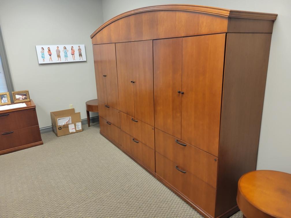 Description Large Conference room storage. Can be used for Audio Visual equipment, paper and file storage. We also have a matching conference table.