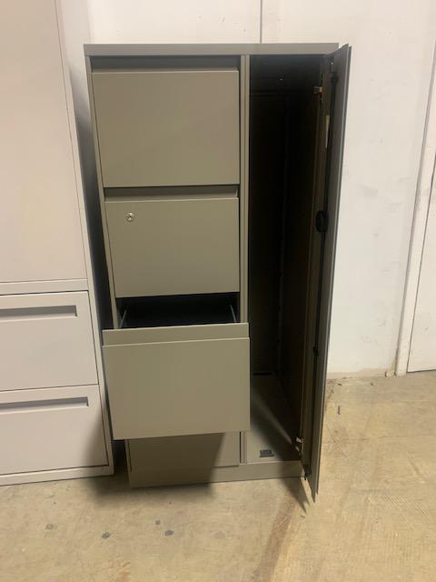 Description FieldStone finish Steelcase storage tower, 24"W x 24"D x 52"H. It would make great storage for an office, garage, basement or playroom! Excellent condition!