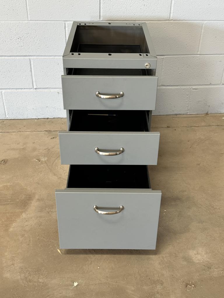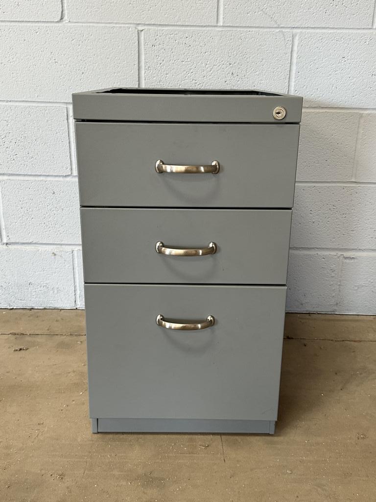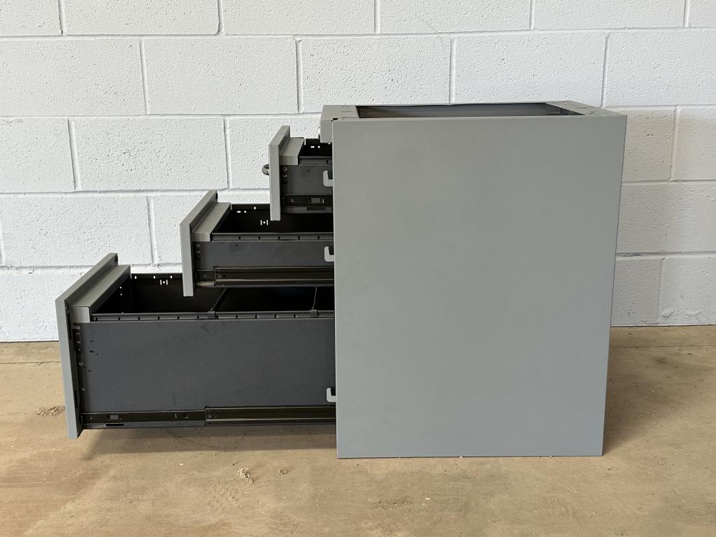 Description We have these Steelcase Box Box File pedestals available that are in a grey tone and very clean. They are surface floor supporting pedestals that work great under any cubicles or desks surface. 22” deep standard pedestal and perfect for a 24” work surface or 30” deep.