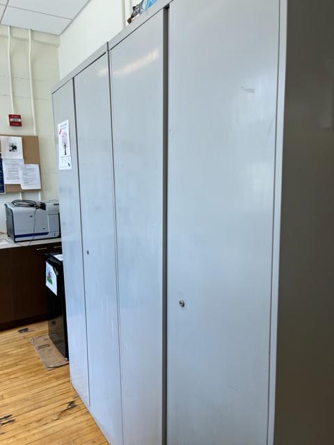 Description Light grey metal finish. Keys avail. upon request (extra). 4 adjustable shelvings inside.