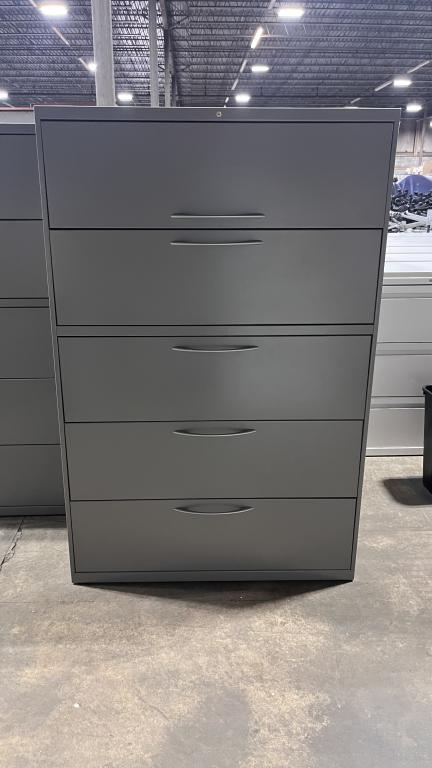 Description Looking for a reliable storage solution? Check out this pre-owned Allsteel 5-Drawer Lateral File in gray. With a width of 42 inches, it offers great space to keep your documents organized. Plus, it's in good condition and built to last, so you can trust it to meet your storage needs.