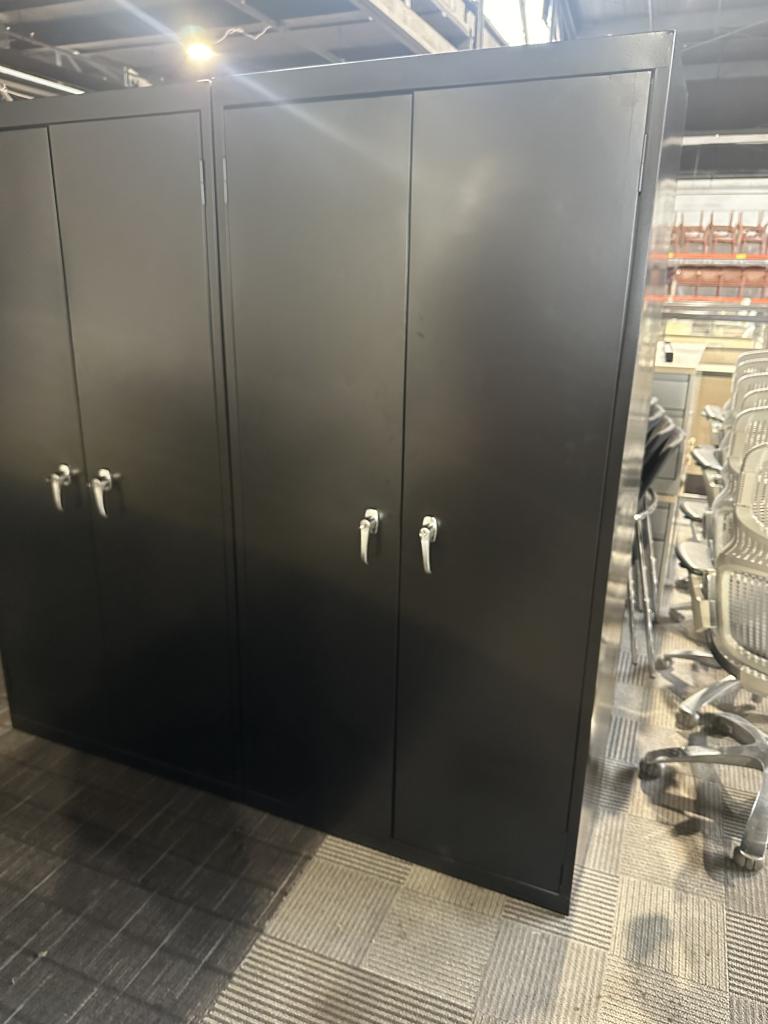 Description Storage Cabinet in Black Metal Finish 36" x 18" x 72" H 25 Matching Available Brand New ( Some still in boxes and wrapped) Each DR Comes w Individual Lock and Key