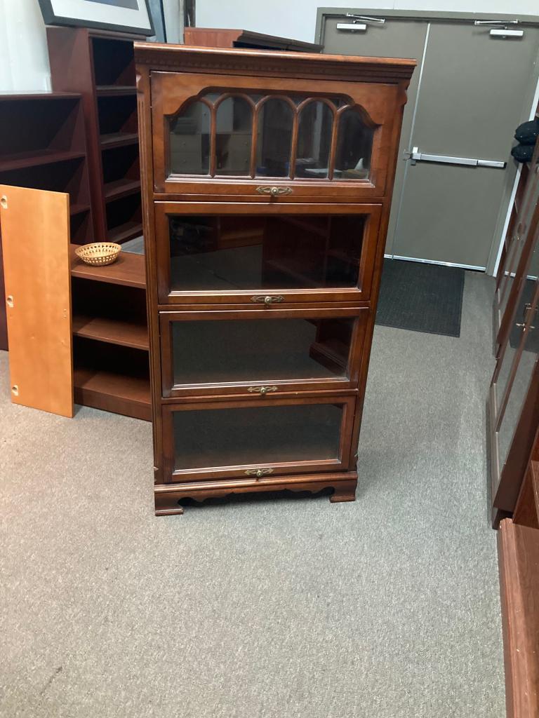 Description Set of three glass front bookcases. Each is 65"Hx33"Wx13"D. These are extremely hard to find