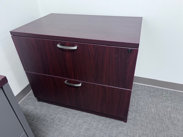 Description Dark Cherry Laminates By Pac Coast. 36wx30hx24d. Like new condition. Filing bars inside ea. drawer.