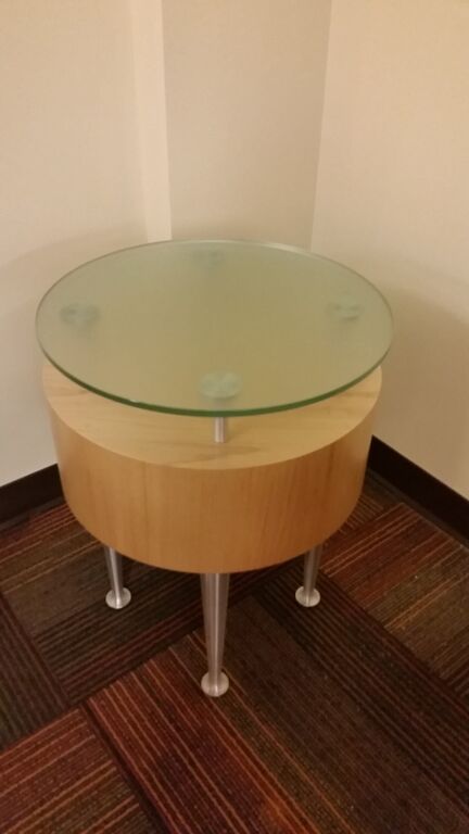 Description Modern Maple coffee tables and occasional tables with floating glass tops. Silver accents give these tables a contemporary look.