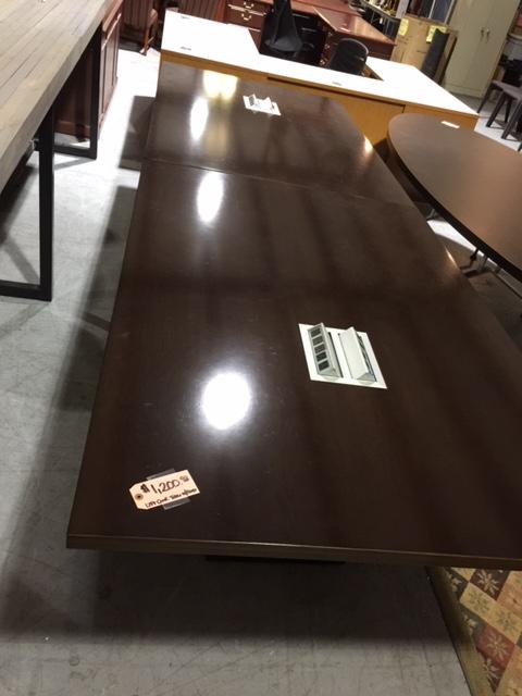 Description 12ft Mahogany Veneer Conference Table with 4 Power Modules. In very good condition.